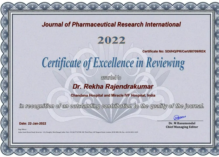 Authored a chapter in FOGSI FOCUS 2021, Nutrition in women: Across ages, Chapter 20, “Micronutrients in male and female Infertility”, 26/06/2021, Pg 173 – 182. This edition of FOGSI FOCUS got best FOGSI FOCUS award on 26/09/2021 at FOGSI MGM.